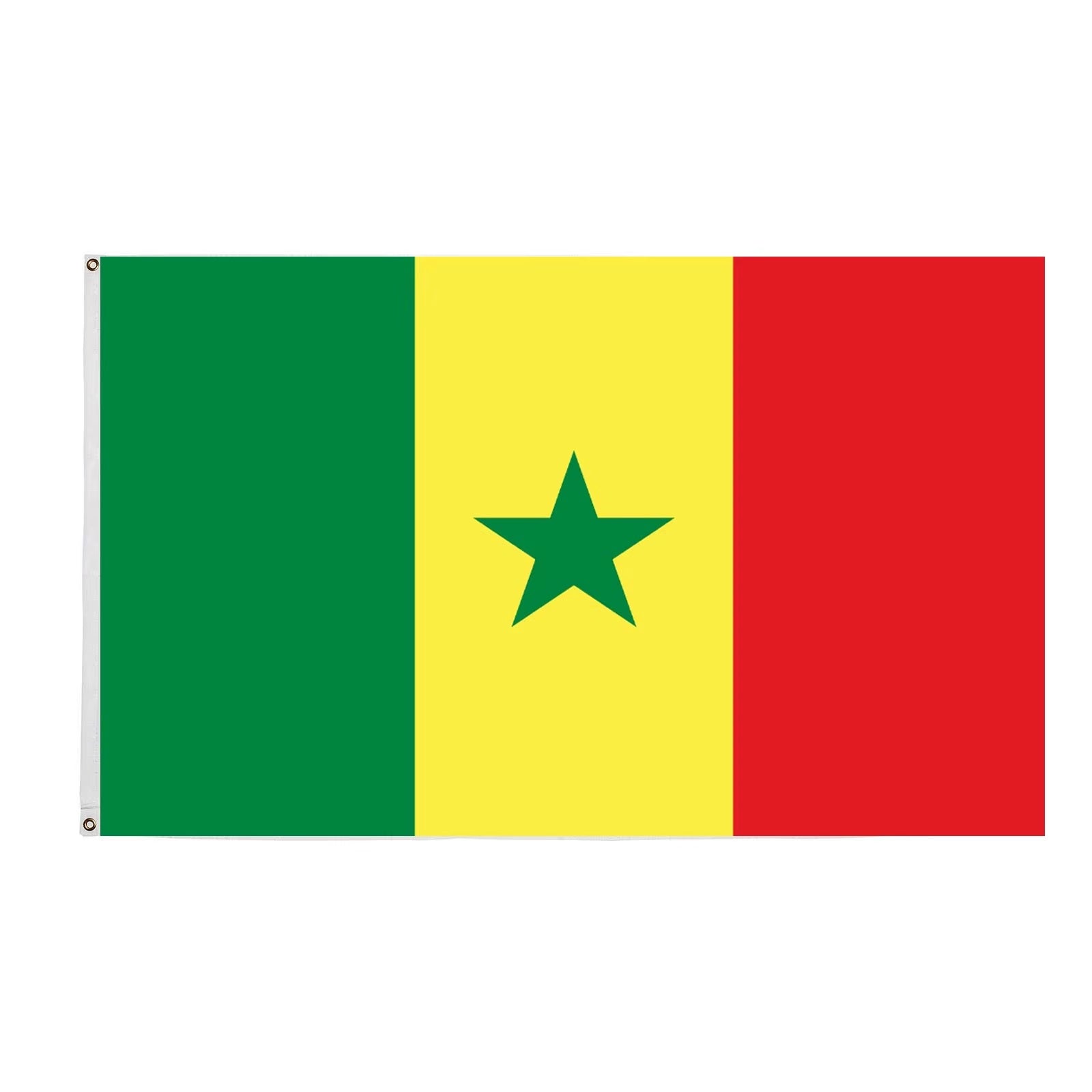 Drapeau du Sénégal en polyester de haute qualité, dimensions 90 × 150 cm. Composé de trois bandes verticales vert, jaune et rouge avec une étoile verte à cinq branches au centre, il représente l’identité, la fierté et l’histoire du pays. Parfait pour les célébrations, les événements sportifs, les fêtes nationales ou tout simplement comme décoration patriotique.